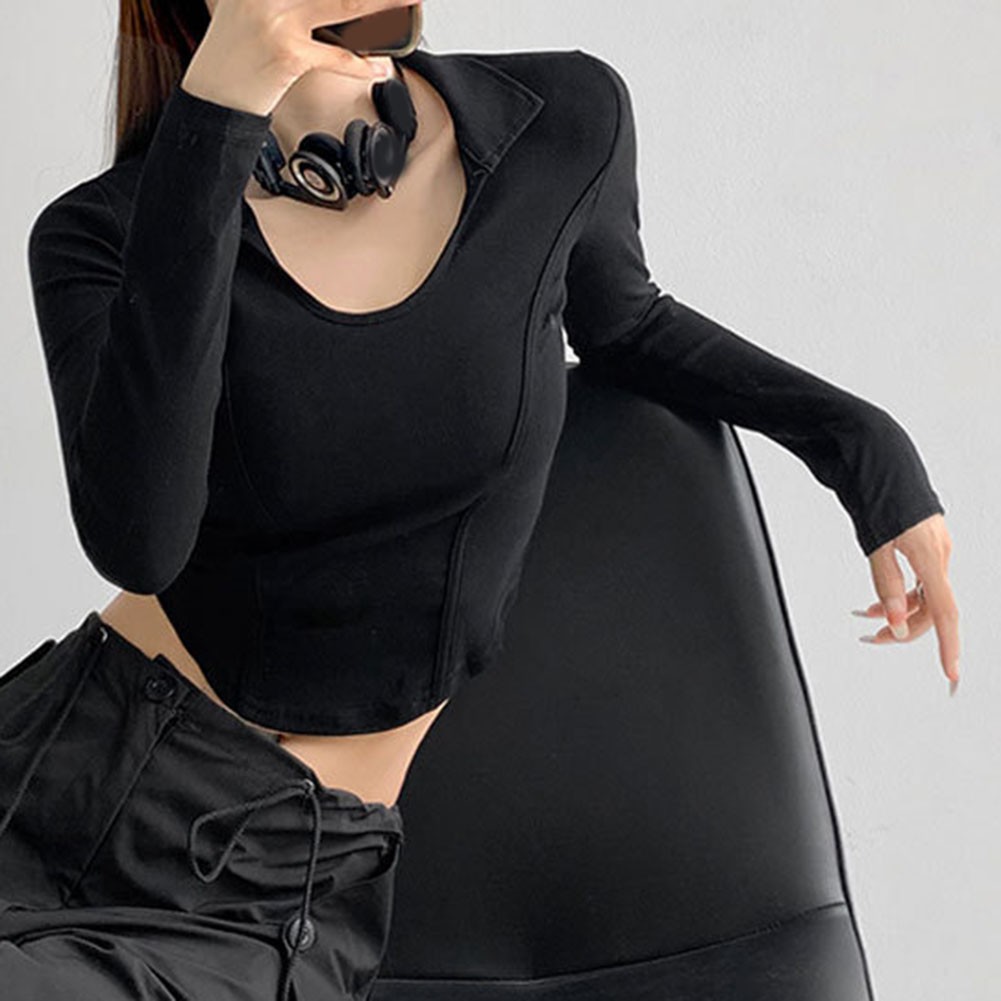 T-shirt femme slim fit manches longues avec style irrégulier pour mode automne