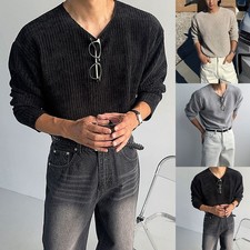 T-shirts décontractés tricotés décontractés à manches longues pour hommes