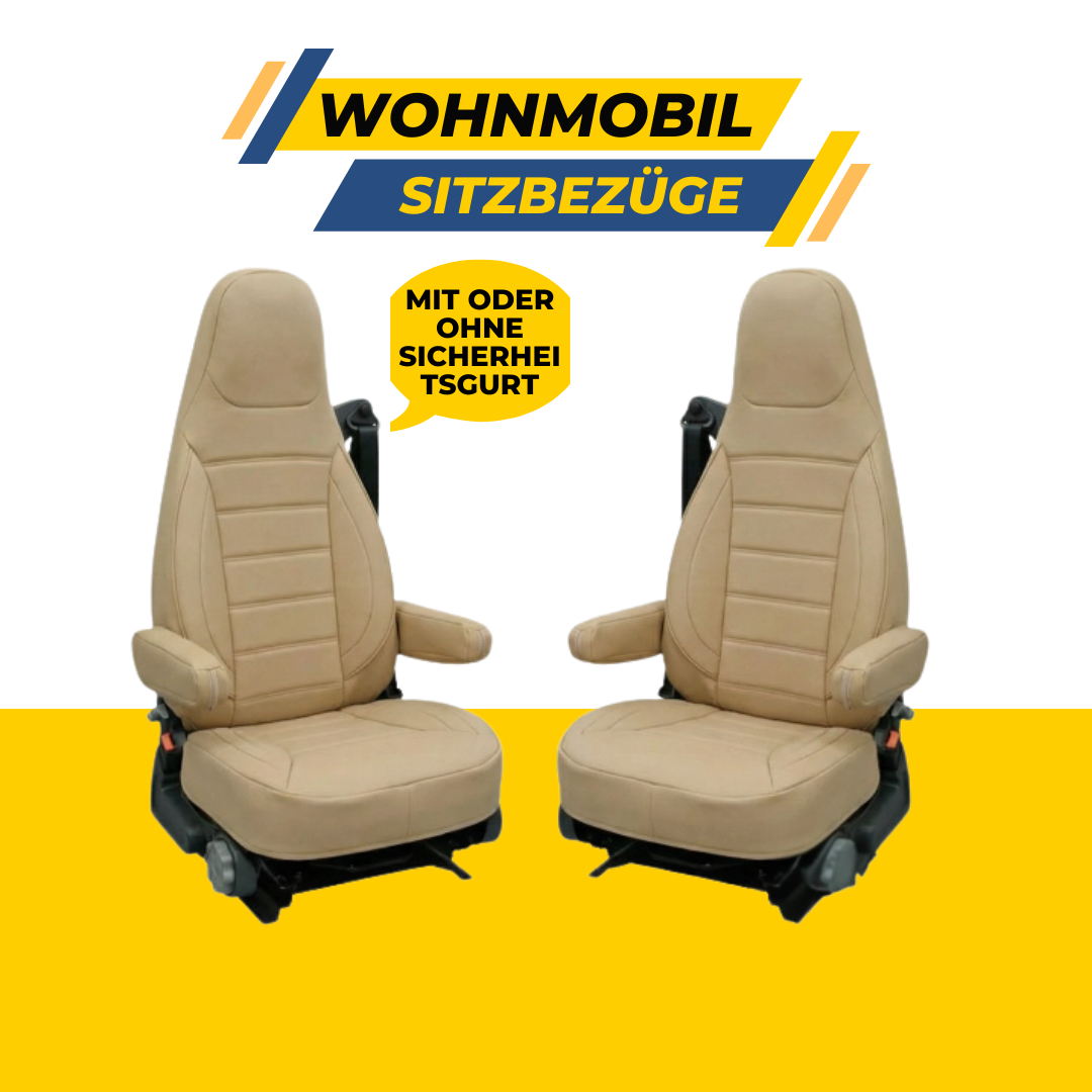 Caractéristiques - housses de siège camping-car Aguti Milan & GIS Liner. Les housses de siège sont en similicuir durable et respirant avec une finition de haute qualité 2 x housses de siège : conducteur et passager avant.
