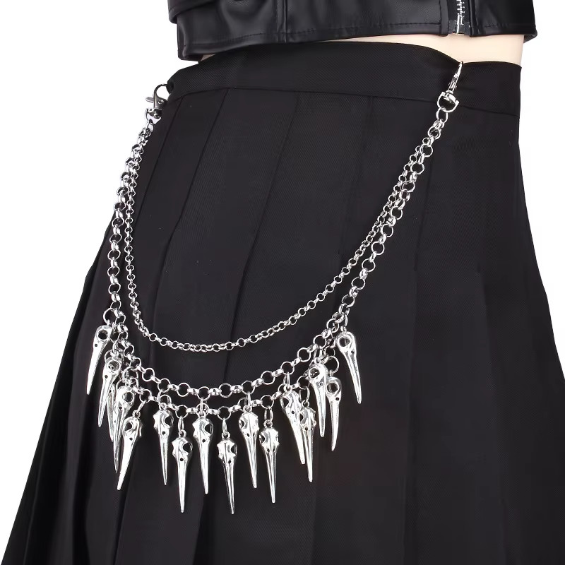 Apportez une touche sombre à votre look - avec la chaîne de pantalon « Raven Skull ». Cet accessoire distinctif en métal robuste attire tous les regards. La chaîne à double rangée est dotée de nombreux pendentifs détaillés du crâne de corbeau et donne à chaque tenue une touche sombre et rebelle.
