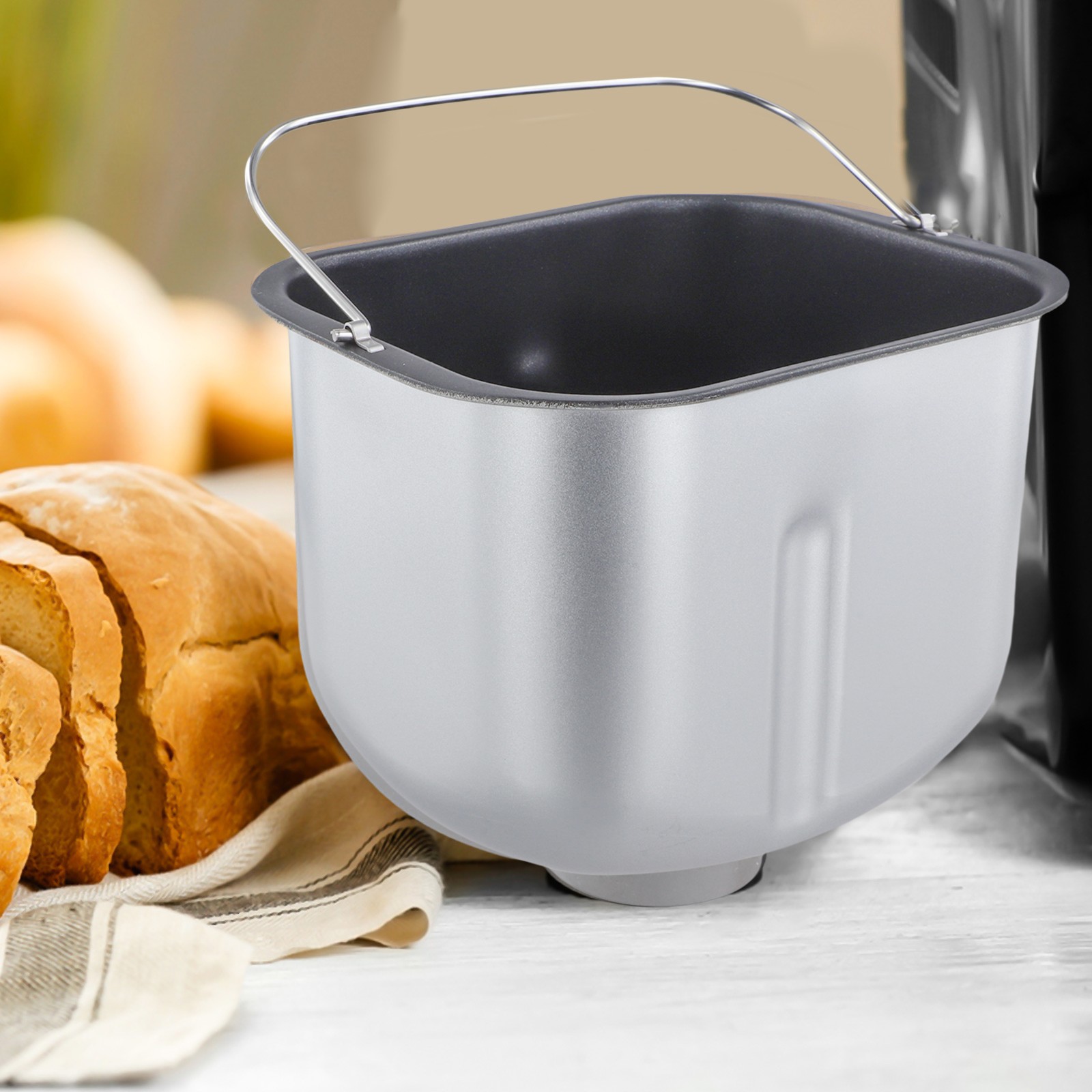 Nom de la pièce : machine à pain et seau à pâte. 1 Machine à pain et seau à pâte. Fabriqué avec des matériaux robustes en acier inoxydable qui résistent à l'usure, ce seau de mélange est conçu pour résister aux exigences des activités de cuisson régulières.
