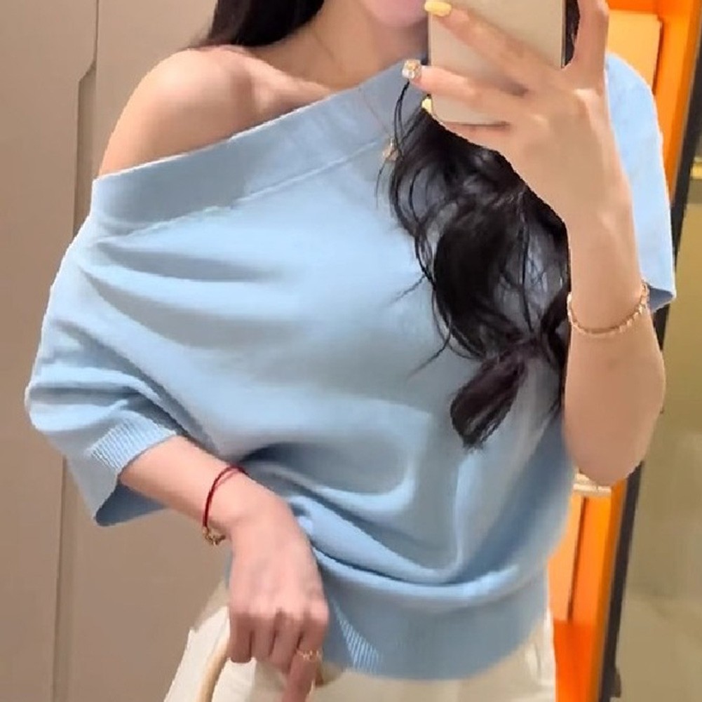 T-shirt été couleur unie pour femme à manches courtes et épaules dénudées
