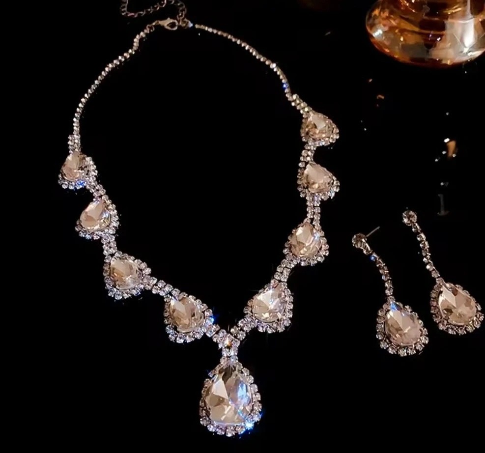 Parure élégante composée de collier et boucles d’oreilles ornés de cristaux blancs. Design raffiné et lumineux, idéal pour soirées, mariages ou comme cadeau élégant. État : neuf. ✨ parure bijoux femme collier et boucles d’oreilles bijoux cristaux blancs parure élégante bijoux soirée / mariage bijoux femme neufs parure chic scintillante bijoux tendance femme 💎