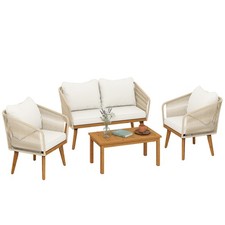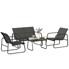 Outsunny Salon Jardin 4 Pièces Canapé 2 Places 2 Fauteuils Table Basse Acier