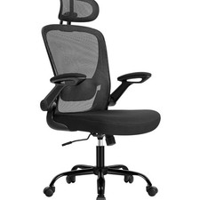 SONGMICS Chaise Bureau Ergonomique en Toile, Fauteuil, Support Lombaire Rembourré, Mécanisme à Bascule, Assise Large de 53 cm, Accoudoirs Rabattables