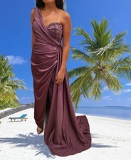 NONE Robe de soirée asymétrique épaule dénudée, à la mode, élégante, près des hanches, Robes de soirée, couleur unie, robe de bal pliée en métal, nouvelle collection automne/hiver