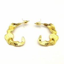 NONE Boucles d'oreilles créoles à fragments minimalistes en or 24 carats (AU999) pour femmes Fragments en relief 3D, texture galaxie martelée avec incrustations turquoise