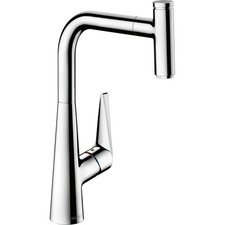 hansgrohe Talis M51 robinet de cuisine 260 72816800 Zone Confort 260 Plage de pivotement réglable sur 3 niveaux 110° 150° ou 360° jet normal débit max. à 3 bars 4 5 l/min Système de mélange en céramique Limite de température réglable convient aux chauffe-eau instantanés ÉcoSmart Technologie AirPower Système anticalcaire Quick Clean