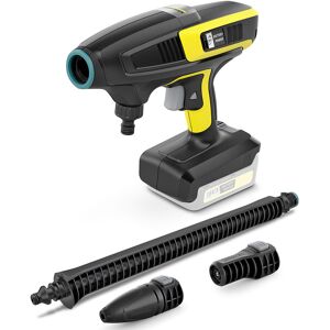 Le nouveau pistolet de nettoyage sans fil KHB 6 permet un nettoyage rapide et efficace au quotidien. CARACTÉRISTIQUES ET AVANTAGES Batterie interchangeable 18 V Écran LCD avec affichage de l'autonomie et du temps de chargement en temps réel. Durable et puissant grâce aux cellules Lithium-ion Compatible avec la plateforme batterie POWER 18 V. Fonctionne en moyenne pression Buses Quick Connect faciles a changer. Une buse a jet plat pour un nettoyage en douceur et une buse rotative pour les salissures plus importantes sont incluses. Des accessoires pour des utilisations variées Pour les escaliers et les petites superficies : le PS 20 portable. La lance Multi Jet MJ 24 portable avec 5 buses différentes. Pour les endroits difficiles d'acces : le joint flexible ajustable a 360° du VJ 24 portable. Données techniques • Appareils sans fil • Plateforme batterie Plateforme de batteries 18 V • Pression: max. 24 bar • Niveau de pression Moyenne pression • Débit: max. 200 l/h • Tension: 18 V • Autonomie par charge de batterie (min) max. 12 (2,5 Ah) / max. 24 (5 Ah) • Poids (sans accessoires): 1,3 kg • Poids (emballage inclus): 2 kg • Dimensions (L x l x h): 302 x 89 x 252 mm Équipement • Variante, Batterie non incluse • Filtre a eau intégré • Adaptateur tuyau d'arrosage A3/4" • Buse jet plat • QC Rotabuse Handheld • Lance simple Photo d'illustration>