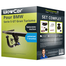 Auto-Hak propose aujourd'hui une gamme complète d'attelages pour plus de 500 modèles de véhicules. Avec plus de 30 ans d'expérience, la marque Auto-Hak, de par la conception et la qualité des produits, sera à la hauteur de vos attentes. Facile à monter grâce aux notices de montage fournies (partie mécanique et partie électrique). Caractéristiques : Indications : BMW Serie 5 GT - sauf pack M Date de fabrication : 07/13- Type de rotule : Rotule verticale démontable sans outil Masse remorquable : 2000Kg Masse statique : 100Kg Dépose du pare-chocs : Oui Découpe du pare-chocs : Pas de découpe Poids de l'attelage : 17Kg Caractéristiques du faisceau : Type : Faisceau universel multiplexé 7 broches avec boitier électronique pour protéger l'ordinateur de bord du véhicule Compatibilité feux LED : Oui Passage à la valise : Non Longueur des fils : 3m de fils pour le montage du module, 5m de longueur pour le fil d'alimentation Cosse : Pré-montée sur le connecteur du boitier électronique Gestion des radars de recul : Non, désactivation manuelle via interrupteur au tableau de bord si le véhicule en est fourni