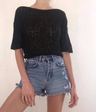 NONE T-shirt en maille noire gothique de rue à lacets, anneau Punk, manches évasées, pull à œillets, extérieur Harajuku Vintage pour femmes