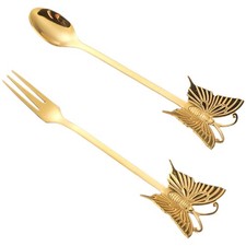NONE Fourchette à fruits dorée en acier inoxydable, Mini fourchette créative, vaisselle, fourchette à Dessert, lavable au lave-vaisselle pour fête à domicile, Restaurant, 20 pièces