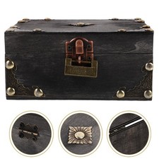 NONE Boîte à bijoux Pirate en bois, petite boîte à bibelots rétro, coffre au trésor, boîte à loquet, conteneur de rangement d'articles divers, organisateur de table