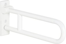 Serie 801 pivotant HEWI Serie 801 rotative0 L: 600 mm avec coussin de bras blanc pur - deux parallèles, l'un au-dessus de l'autre, réunis par une bielle avec coussin de bras noir - conception ergonomique et fonctionnelle dans un design simple et intemporel - sert à tenir et à soutenir, résilient selon DIN 18024 - facile à nettoyage - peut être plié et freiné et tourné vers la gauche ou la droite en position repliée sur le mur - avec un noyau en acier continu et protégé contre la corrosion et une plaque murale intégrée en acier avec couvercle en polyamide de haute qualité - montage sur le mur avec un matériau de fixation spécifique au mur de HEWI - projection 600 mm, 259 mm de hauteur et 78 mm de profondeur, diamètre de la tige 33 mm, longueur du coussin de bras 295 mm - coussin de bras en mousse PU intégrale noire - en polyamide de haute qualité dans les couleurs HEWI - porte-papier 801.50.010 et gâchette affleurante WC (radio) 801.50.060 peut être installé ultérieurement - Marquage CE selon MPG