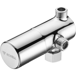 Schell vanne d'équerre thermostat 094140699 raccord thermostatique antibrûlure pour montage sur robinet d'équerre avec sortie G 3/8 Réglage de la température de sortie max. caché sous le capuchon Désinfection thermique possible (uniquement avec Outils ) Thermostat à vanne d'équerre : thermostat à matériau de dilatation selon EN 1111 Protection contre les brûlures en cas de coupure d'eau froide 801 Clapet anti-retour RV (EN 1717:EB) préfiltre 801 Capuchon en plastique Boîtier en laiton conforme à l'ordonnance sur l'eau potable Désinfection thermique possible après déverrouillage de la serrure de température Débit à 3 bar 13 l/min température de fonctionnement max 70° (temporairement par exemple pour la désinfection thermique) température de sortie max 33-50 °C réglable Raccordement G 3/8 IG G 3/8 AG Sortie G 3/8 AG Certificats : P-IX 29876/I DIN DVGW