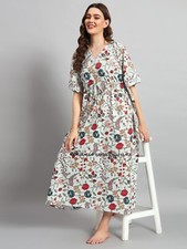 NONE Robe longue verte pour femmes indiennes, Design imprimé, manches 3/4, col rond, ourlet évasé, vêtements pour femmes, robe traditionnelle indienne