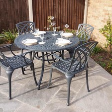 Ensemble table de jardin ronde + 8 fauteuils ORIENGO Graphite places - Aluminium traité époxy, Acacia certifié FSC® Hespéride