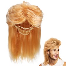 Perruque mulet pour hommes des années 80, accessoires à bascule, collier de lunettes de soleil, Costume d'halloween, barbe des années 1980, fête des années 1990, longue/mullet/marron