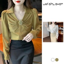 NONE Chemise en mousseline de soie florale polyvalente pour femmes, col de poupée, à la mode et Super féerique, nouvelle collection été