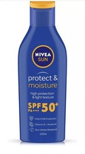 NIVEA SUN Protect & Moisture, 200 ml, Protection contre le rayonnement solaire pour femme, Protégez votre peau des coups de soleil, du vieillissement prématuré et des autres dommages provoqués par les rayons solaires. Le produit solaire NIVEA SUN Protect & Moisture crée un écran efficace qui protège la peau des rayons UV, empêchant ainsi l’apparition des coups de soleil et des taches pigmentaires. Il prévient également la perte d’élasticité, la perte de collagène et les autres symptômes du vieillissement cutané. De plus, il réduit considérablement le risque de cancer de la peau. Le produit : apporte à la peau l’hydratation dont elle a besoin protège la peau contre les rayons UVA et UVB nourrit la peau et en prend soin s’étale facilement et ne laisse pas de films gras résiste à l’eau Mode d’emploi : Appliquez les solaires en quantités suffisantes et à plusieurs reprises. Appliquez le produit environ 20 minutes avant l’exposition de la peau au soleil. Répétez selon les besoins, essentiellement après le bain, en cas de transpiration ou lorsque vous venez de sécher votre peau avec une serviette.