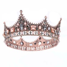 NONE Diadèmes et couronnes baroques Vintage en cristal noir strass pour femmes, diadèmes de princesse reine avec pompon, accessoires pour cheveux de mariage