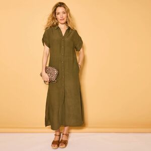 Taille• Longueur dos 122 cm environComposition• Crêpe 100% viscose• Doublure crêpe 100% viscoseDescription• Belle longueur flatteuse • Col chemisier sur ouverture en V• Entièrement boutonnée devant• Taille appuyée par une découpe élégante, idéale pour toutes les morphologies• Épaules descendues• Manches courtes à relever par patte boutonnée• 2 poches dans coutures côtés• Base évasée avec grandes fentes côtés