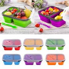 Boîte à déjeuner en Silicone de couleur blanc/bleu, ensemble de 3 pièces, récipient de stockage des aliments, boîte à Bento avec couvercles, lavable au lave-vaisselle, au four à micro-ondes et au