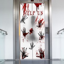 NONE Autocollant de porte d'halloween 3D, papier peint auto-adhésif amovible d'horreur sanglante, personnaliser toutes les tailles, affiche de décoration de fête à domicile