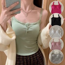 Débardeur en dentelle pour femmes, col en V, Camisole décontractée, mignon, haut d'été, coupe ample, crème, haut court, sangle fine, chemise, gilet, vêtements pour femmes