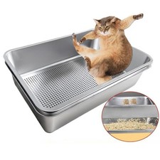 NONE Bac à litière ouvert en acier inoxydable pour gros chats, surface lisse, portable, côtés hauts, fournitures pour animaux de compagnie, facile à nettoyer, toilettes pour chats