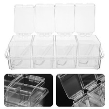 NONE Boîte d'assaisonnement transparente à quatre compartiments avec couvercle de cuillère et Base de rangement, sel, sucre, conteneur de stockage MSG quatre en un