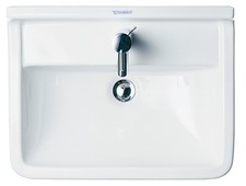 Duravit Starck 3 lavabo 0300550000 blanc Conçu par Philippe Starck avec trop-plein en céramique sanitaire Forme de lavabo rectangulaire avec rebord de 30 mm de large et rangée de trous de robinetterie inférieure pour robinetterie monotrou Raccordement mural avec dosseret 30x35mm comme protection contre les éclaboussures Piscine intérieure (LxP) 470x280mm Dimensions (LxPxH) 550x430x190mm Veuillez commander séparément la demi-colonne correspondante 0865150000 et la fixation 0055030000.