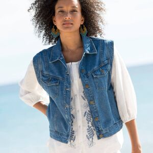 Véritable plus pour votre look, la veste en jean est un indispensable du dressing féminin. Avec sa coupe sans manche, elle gagne en originalité et s'adapte aux tenues estivales. Allure décontractée garantie portée sur un t-shirt, cette veste en jean révèle tout son potentiel mode sur un chemisier bohème ou une robe longue imprimée.