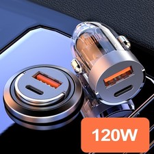 NONE Chargeur de voiture 120W 4 en 1, avec câble rétractable et 2 Ports USB, adaptateur allume-cigare USB Type C pour IPhone Samsung Huawei