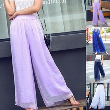 NONE Pantalon évasé en mousseline de soie pour femme, jambe large, fendu sur le côté, décontracté, élégant, harem, yoga, été, 5XL