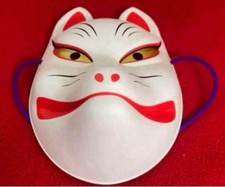 Masque de renard japonais en fleurs de cerisier roses, nouvelle pâte de papier peinte à la main, demi-masque de renard Anime Halloween Cosplay, masque d'animal de fête