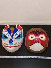 NONE Masque de renard japonais en fleurs de cerisier roses, nouvelle pâte de papier peinte à la main, demi-masque de renard Anime Halloween Cosplay, masque d'animal de fête