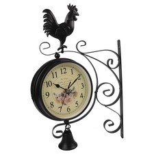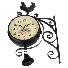 NONE Horloge murale silencieuse Double face en bois massif, décoration de maison, horloges suspendues des deux côtés du mur au coin du salon