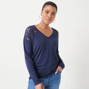 Un décolleté V délicat, des empiècements en dentelle raffinés et une maille fluide qui flatte la silhouette : ce t-shirt revisite l’essentiel tee-shirt avec féminité ! Facile à associer, il composera un look casual chic avec un jean ou une jupe.