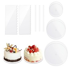NONE Disque à gâteau rond en acrylique réutilisable, 2 pièces, plaque de Base de gâteau joyeux anniversaire, garniture en acrylique vierge pour gâteaux superposés, outils de décoration