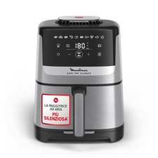 Air fryer Easy Fry Smart & Silence EZ572DF0 : Le air fryer le plus silencieux* L AIR FRYER LE PLUS SILENCIEUX* Silence, ça croustille ! Votre friteuse sans huile Easy Fry Smart & Silence est équipée de la technologie exclusive Silence de Moulinex. Elle promet des préparations culinaires dans un environnement calme et serein. Avec seulement 48 dB(A), son système de flux d'air optimisé isole le bruit en toute efficacité. Votre air fryer est aussi silencieux que votre réfrigérateur ! *Tests réalisés sur des frites avec le mode friteuse à air conformément à la norme IEC60704 UNE CONCEPTION INGENIEUSE POUR UNE UTILISATION FACILE AU QUOTIDIEN Sa façade amovible, très pratique, facilite l'entretien et le passage au lave-vaisselle. Le couvercle de rangement (fourni dans le pack) est parfait pour conserver vos aliments au réfrigérateur directement dans le panier du air fryer. UNE FRITEUSE SANS HUILE INTUIITIVE ET PRECISE Lancer vos cuissons de manière précise étape par étape : choisissez votre type d'ingrédient et sa quantité précisément, le temps et la température de cuisson se lancent automatiquement. Nous garantissons un résultat de cuisson optimal, sain, doré et croustillant avec peu ou pas d'huile (jusqu'à 99% d'huile en moins*) ! *Tests réalisés en 2024 avec des frites surgelées REJOIGNEZ NOTRE COMMUNAUTE ! Avec notre application My Moulinex vous ne serez jamais à cours d'inspiration. Lancez-vous, des centaines de recettes vous attendent !