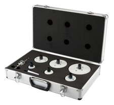 Le set dans un coffret en aluminium contient des trous Ezychange2 d'un diametre de 20, 25, 32, 40, 51 et 65 mm, ainsi qu'un adaptateur avec un foret de centrage HSS-G et un foret de centrage HSS-G.>