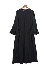 NONE Robe longue rétro à manches longues pour femmes, poche solide, bouton document, robe décontractée classique, grande taille, été