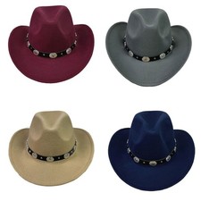 NONE Chapeaux Fedora à large bord en Patchwork blanc pour femmes, chapeaux Fedora classiques en feutre bicolore pour hommes, chapeau de Cowboy Jazz à la mode, ceinture marron