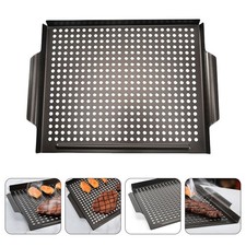 NONE Gril de Barbecue pliant en acier inoxydable 304 de qualité alimentaire, avec manche en bois, pour poisson, Hamburger, grille en maille, accessoires de Barbecue